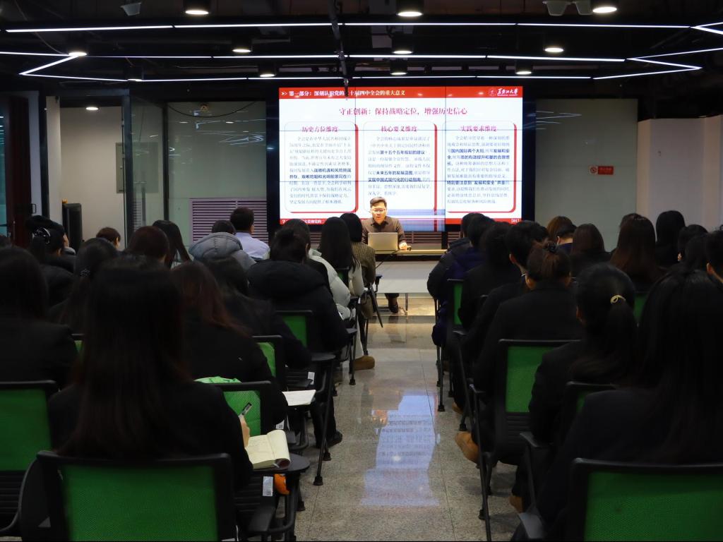 在汇文楼创客空间开展党的二十届四中全会精神宣讲活动。学院邀请马克思主义学院教授侯宪利进行专题宣讲,学院全体教师、学生党员代表参加学习,宣讲会由学院党委书记綦明霞主持。