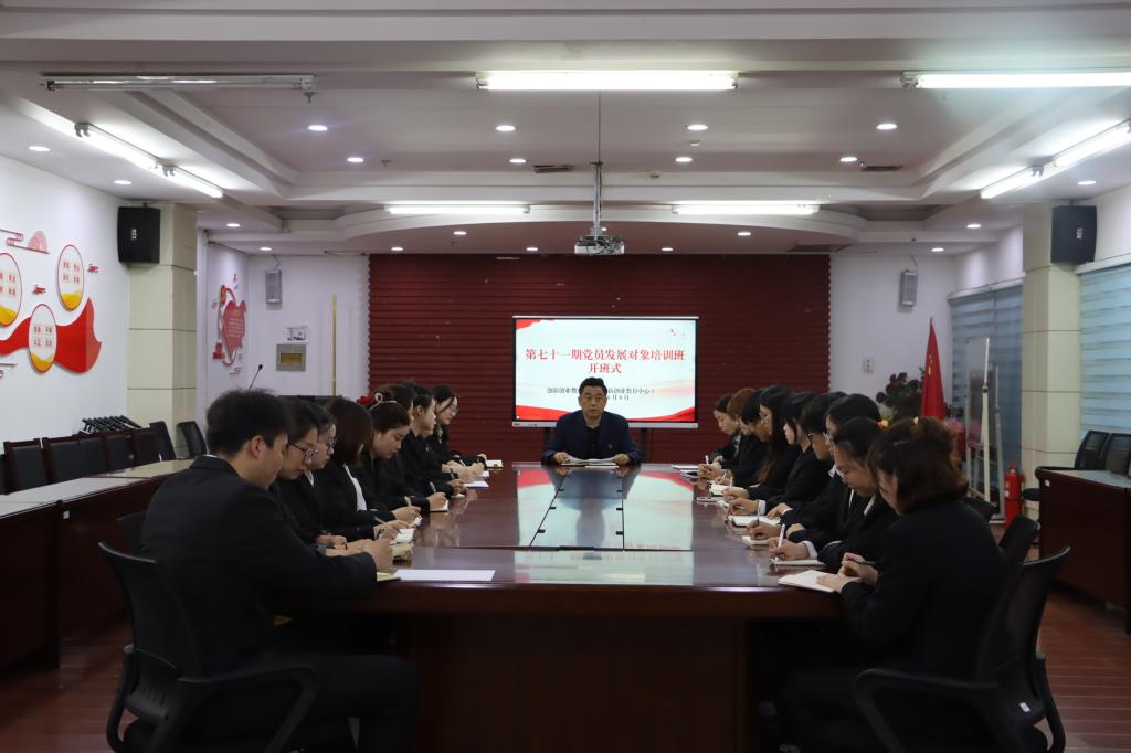 于2025年6月6日下午,在四号教学楼会议室举办第七十一期党员发展对象培训班开班式,会议由学院组织员刘锐主持,学院党委副书记屈广宁、全体学生党支部书记和学员参加会议。