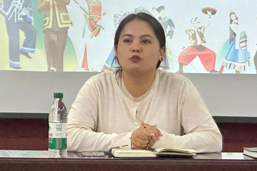 会议伊始,2022级教育学专业朱金如同学分别围绕民族理论与民族政策、民族团结故事、成长历程和实践经历四个方面进行详细介绍。她呼吁少数民族同学要加强自身的民族认同感和文化自信心,准确把握我国统一的多民族国家基本国情以及习近平总书记关于加强和改进民族工作的重要思想,增进对民族团结重要性的认识。