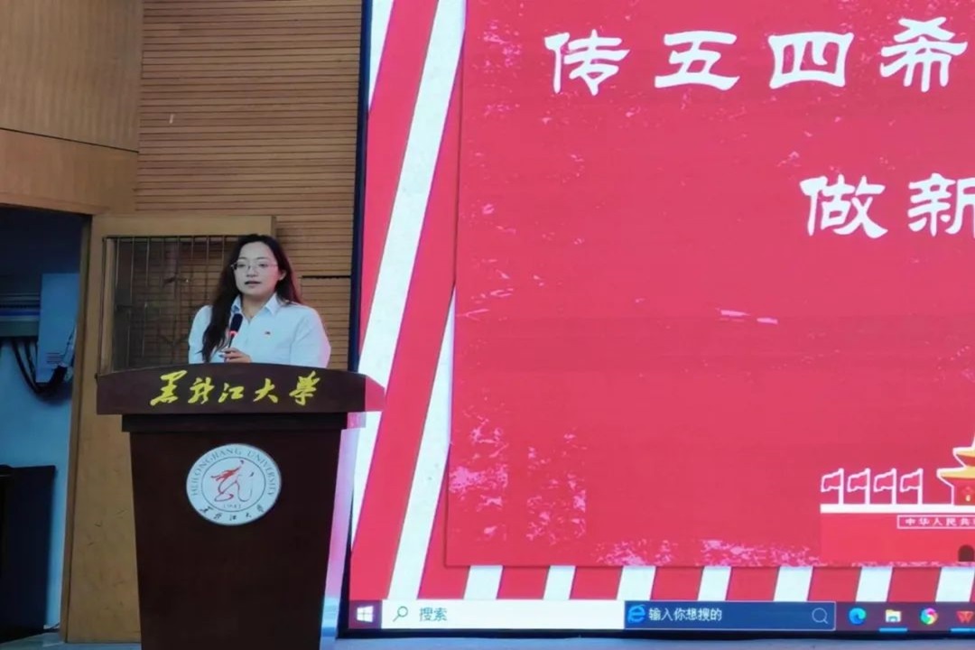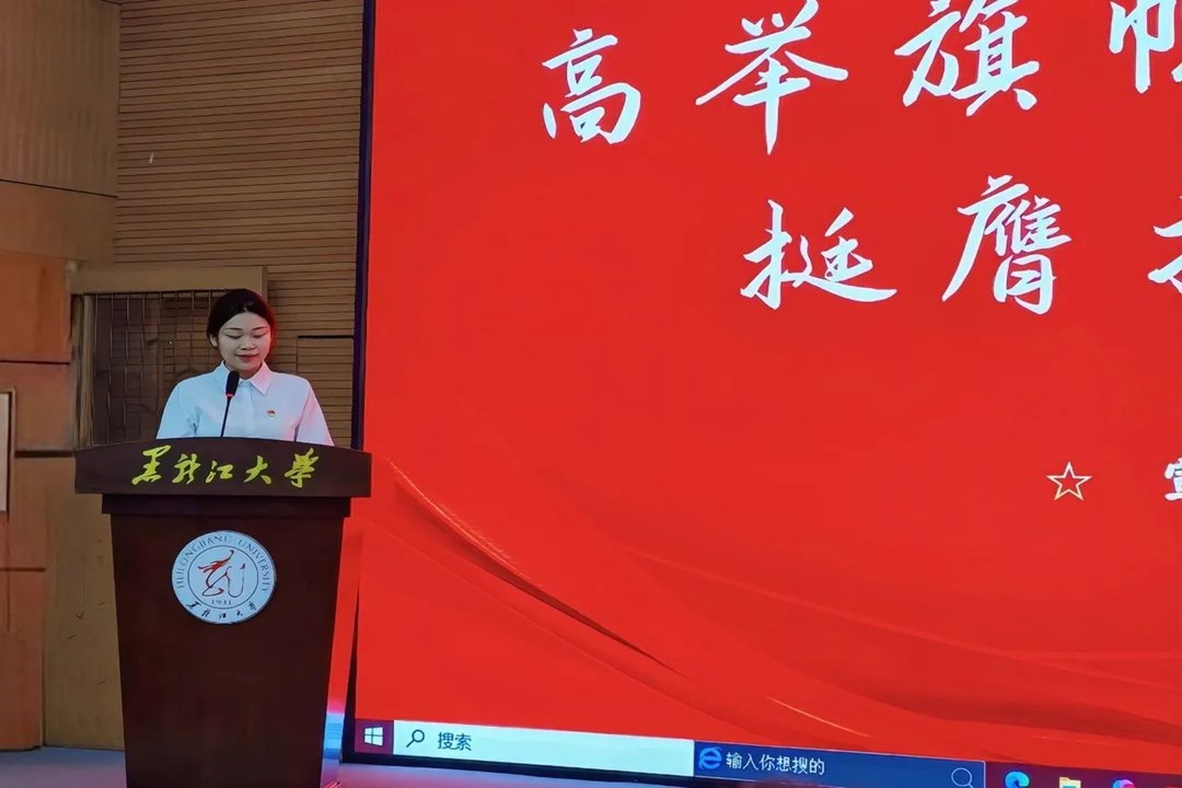政府管理学院田丽新同学以《高举旗帜跟党走,挺膺担当善作为》为题进行宣讲。她带领同学们共同学习共青团黑龙江大学第八次代表大会精神以及工作报告,呼吁同学们要不断加强自身建设,提高综合素质,以奋斗的姿态展现青春的力量,以理性的思维、务实的作风践行“请党放心,强国有我”的铮铮誓言。