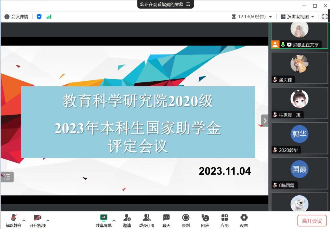 为切实做好我院资助评审工作,激励学生勤奋学习、积极上进。按照黑龙江大学《学生工作部:关于评定2023年国家助学金的通知》的要求,本着公平、公正、公开的原则,结合教育科学研究院2023年家庭经济困难学生认定工作的实际情况,各年级辅导员于2023年11月4日至6日间召开了2023年国家助学金评定会议。会议由各年级辅导员主持,各年级相关学生参加。