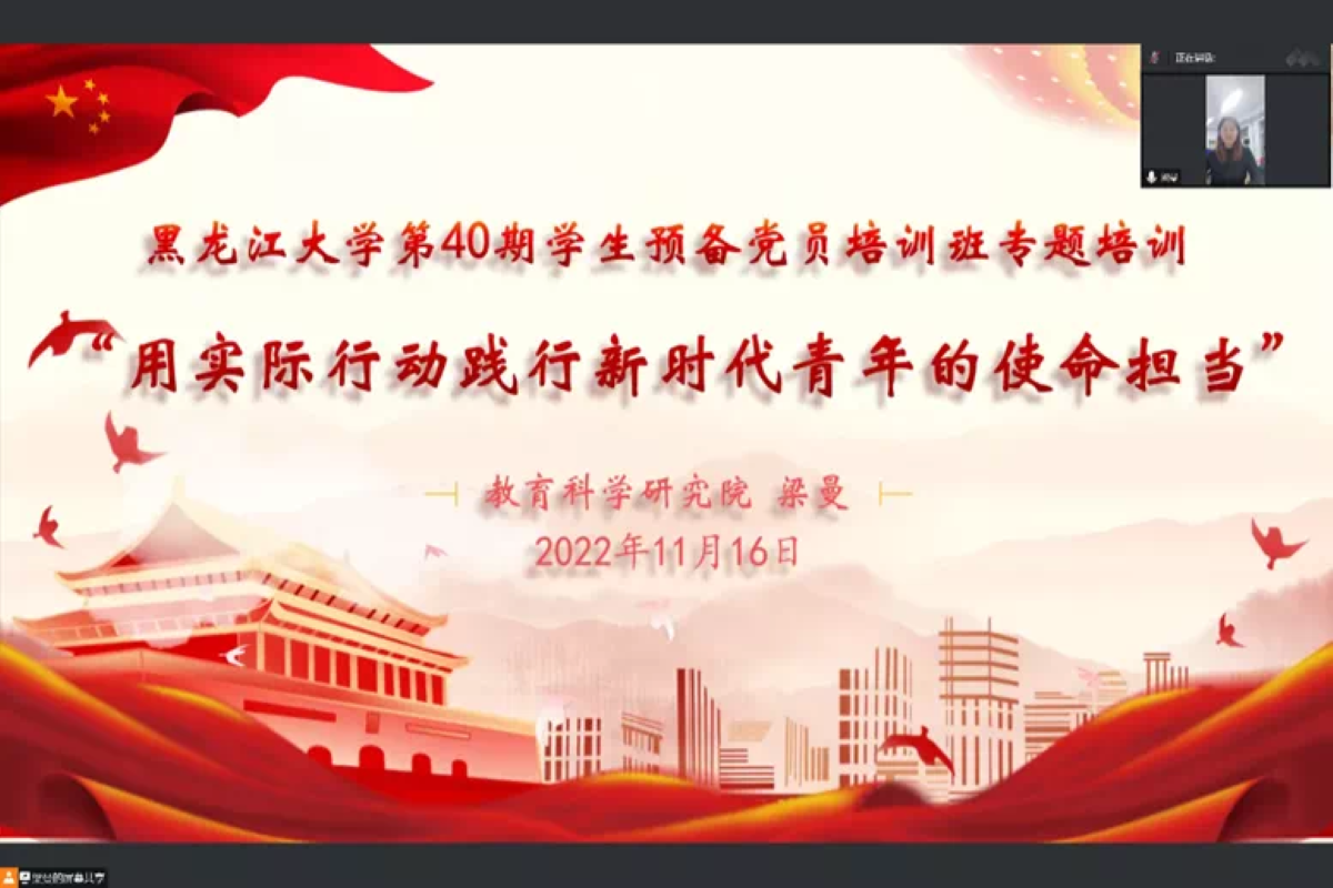 为深入学习贯彻党的二十大精神及习近平新时代中国特色社会主义思想,夯实学生党员先锋工程,引导广大学生党员进一步发挥先锋模范作用,根据学工部《关于举办“学习二十大,永远跟党走”第40期学生预备党员培训班的通知》,教育科学研究院于2022年11月14日至11月23日组织开展第40期学生预备党员培训。本次培训分为学校层面、学院层面以及学生层面三个部分,共计32学时,通过专家讲授、学院内组织线上党课授课、自学等多种形式展开教学。