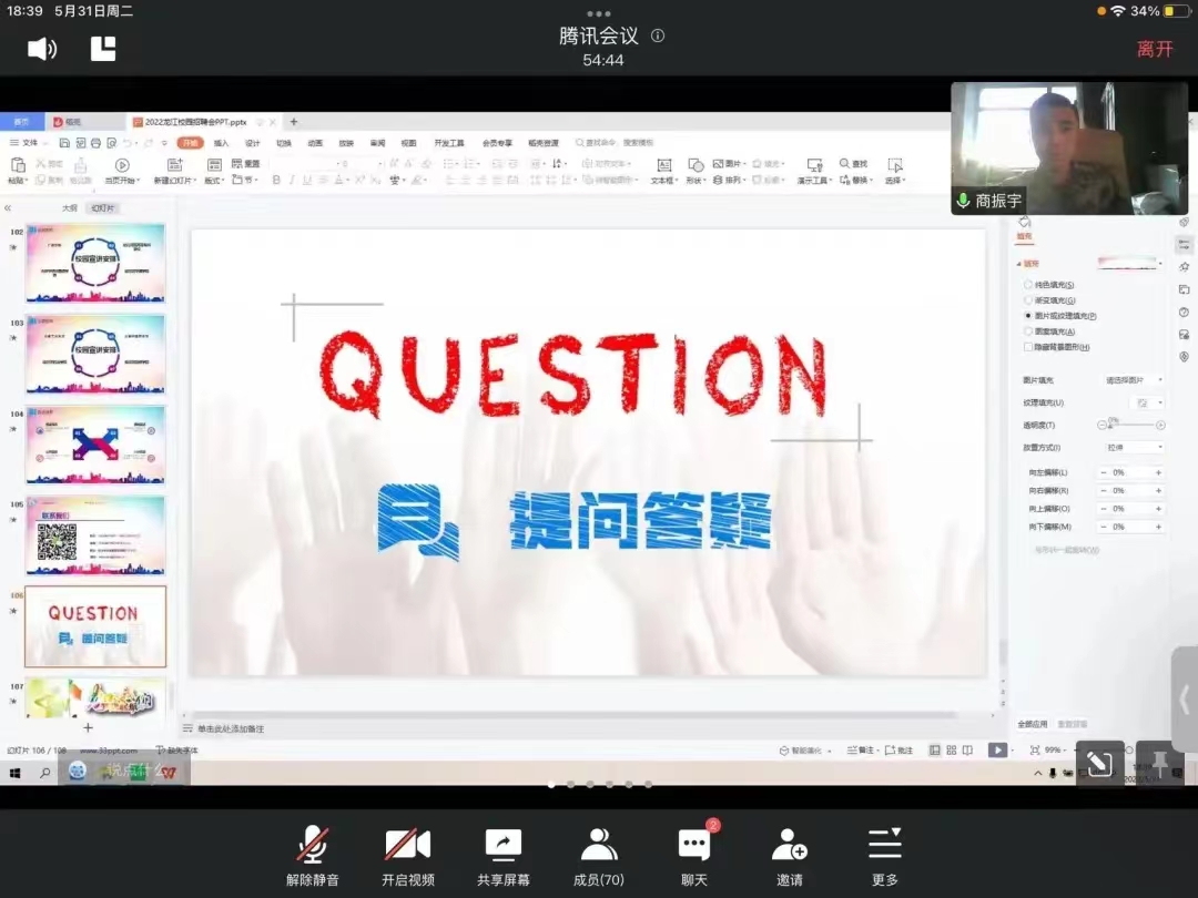 此外,商老师介绍了学校的发展平台,并对于就业岗位和假期实习相关问题进行解答,并给出针对性建议。