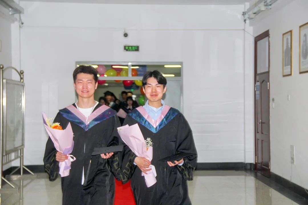 紧接着,进行2022届毕业生学位授予仪式,同学们身着学士服有序排队上台,院领导为他们颁发毕业证书,拨穗正冠,并合影留念。随后,毕业生代表给老师们献上感恩的鲜花,以表达心中的感谢。毕业生们齐唱校歌《岁月如歌》,潸然泪下,每一个同学心中不仅充满了激动、喜悦,更有一种发自内心的感动、感恩,而这拨动的不仅是流苏,也有我们内心深处的一根弦。