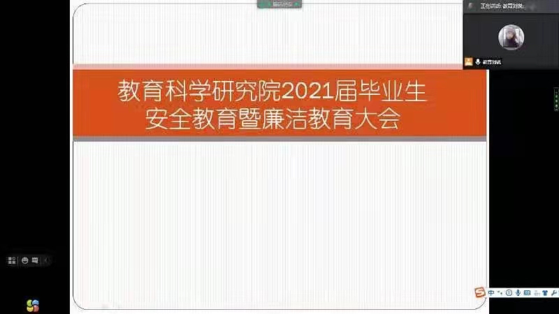 为切实加强毕业生安全教育和管理,引导毕业生上好“离开校园廉洁教育最后一课”,2021年6月17日12时,教育科学研究院召开2021届毕业生安全教育暨廉洁教育大会。会议由2017级辅导员刘锐老师主持,2017级全体学生参加了此次会议。