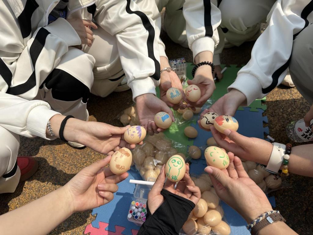 当铅笔的素描成为底色,18色水彩笔的加入将创作推向高潮。同学们以渐变、叠加等手法大胆实验,既以瑶族传统的红、蓝、黑为主色调,还原民族服饰的庄重典雅,又融入现代流行色系,让蛋壳呈现出荧光粉的灵动、莫兰迪色的温柔,传统图案在色彩的交织中焕发新生。