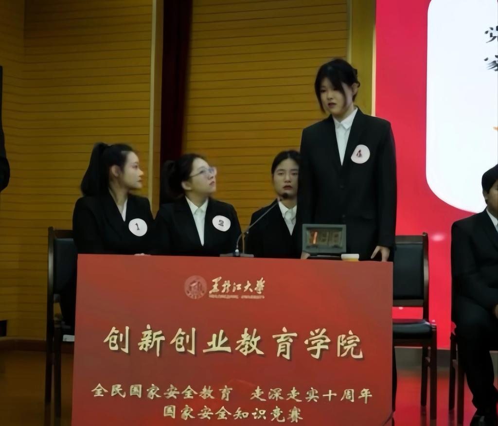 四位选手在国家安全知识竞赛的赛场上表现卓越,她们沉着冷静、配合默契。无论是面对个人必答题还是团队抢答题都迅速反应、她们都展现出了高超的竞技水平和团结的协作精神。在紧张的比赛氛围中,她们互相支持,将个人的智慧与团队的力量完美结合,彰显了双创学子拼搏向上的姿态。